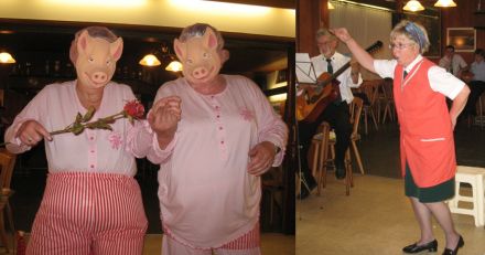 Reibungslos verlief dann aber der Abend im Schützenhaus. Und nicht nur das! Es wurde auch nach langer ‚Auszeit’ wieder Unterhaltung geboten: Königin Monika sorgte mit ihrem „Wanderlied einer Hausfrau“ und dem mit ihrer Prinzessin Regina Dähne aufgeführten „Schweine-Tango“ für große Erheiterung. Auch der Grufty-Chor der USG (2. Vorsitzender Eckhard Löwenstein, Ulli Löwenstein und Königin Monika) trug mit seinem musikalischen Rückblick auf das Schützenjahr dazu bei, dass an diesem Abend nicht nur das Essen eine Rolle spielte, sondern auch geschmunzelt und gelacht werden konnte.